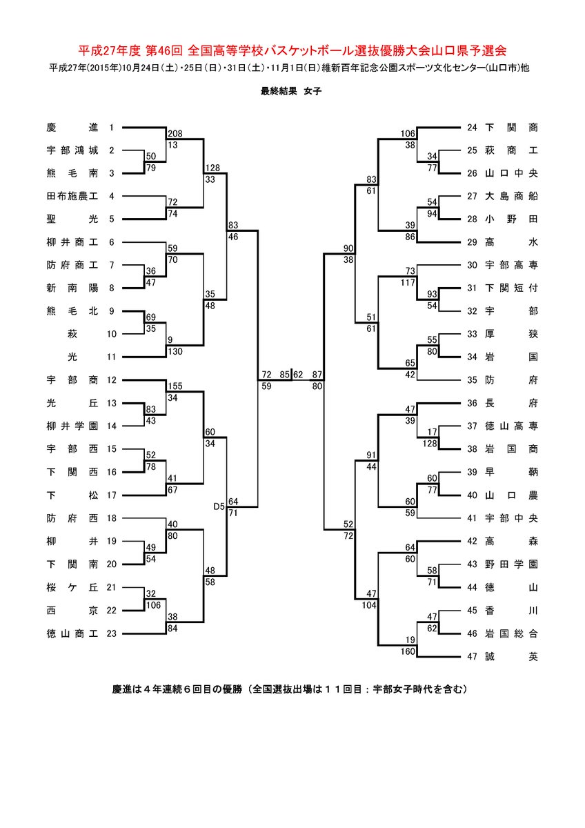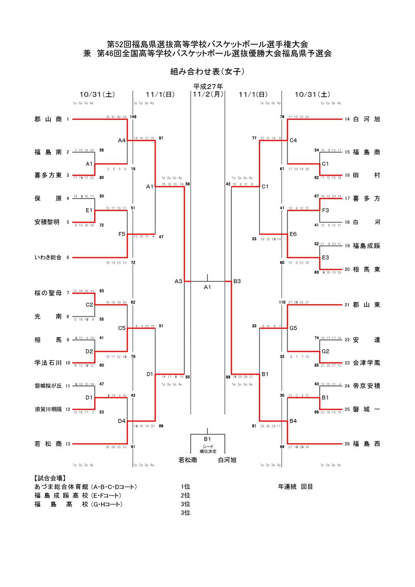いわき総合61-117福島南 - 13:41:31RT @tba_highschool: 平成27年度 全国高等学校選抜優勝大会(ウィンターカップ)2次予選第2日目試合結果 【県北体育館】 ≪男子≫ 試合終了 宇都宮工130-65宇都宮・文星附105-94白鴎足利
